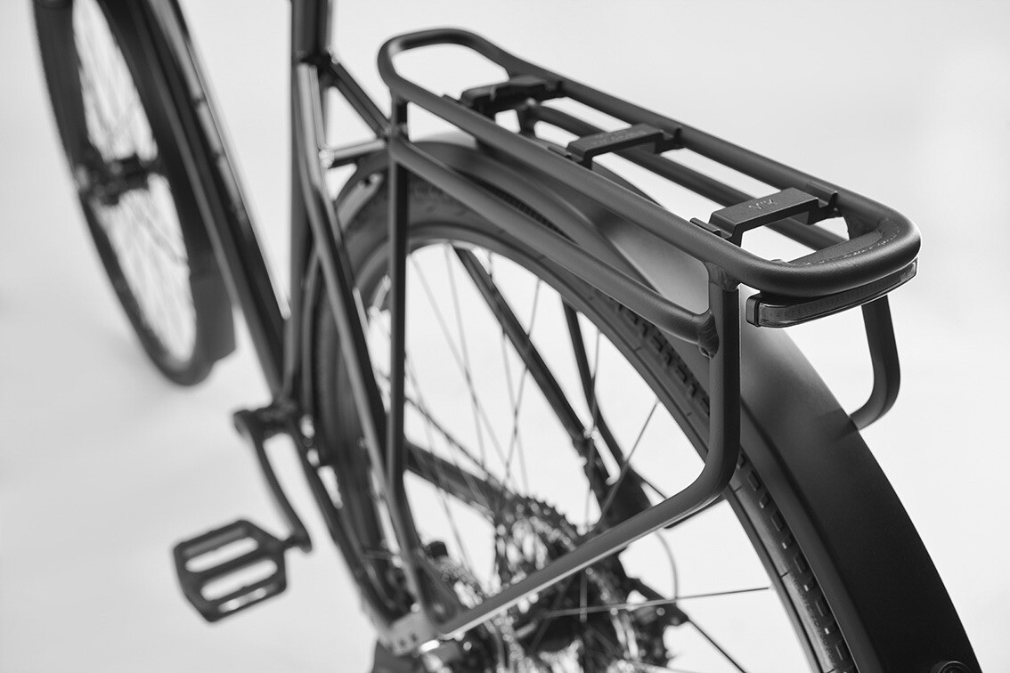 ✔ Complete stadsfietsuitrusting: Spatborden, bagagedrager, geïntegreerde verlichting en zijstandaard.