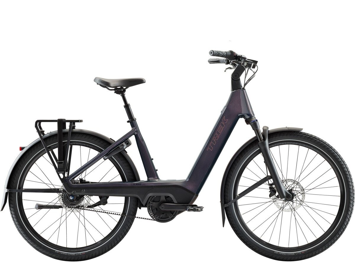 De Charter+ 4 Nexus 5 Belt 540 Wh Lowstep is een onderhoudsarme en gebruiksvriendelijke elektrische stadsfiets voor woon-werkverkeer, plezierritjes en het doen van dagelijkse boodschappen. De cockpit is verstelbaar zodat je de rijhouding kunt veranderen van een rechtop zithouding voor maximaal comfort tot aan een actievere houding voor een efficiënte trapbeweging. Hij is compleet uitgerust met een e-bikespecifieke Shimano Nexus 5 interne versnellingsnaaf, gekoppeld aan een duurzame en geruisloze Gates CDC-riemaandrijving en een Bosch Performance Line-motor met Geassembleerd in Duitsland Ontdek de fabriek in het Duitse Saksen, waar alle Europese fietsen van Trek, Electra en Diamant worden gemaakt. Een betere productiemethode voor aluminium In 2024 zijn we gestart met het uitfaseren van aluminium met hoge uitstoot, ten gunste van een duurzamer alternatief op basis van hernieuwbare energie. Met ingang van oktober 2025 is bijna elke aluminium fiets die we maken van emissiearm materiaal, en dat zorgt voor een enorme reductie in uitstoot. Upgrade je pedalen om meer van je fiets te genieten De pedalen vormen twee van de vijf contactpunten waar je je fiets aanraakt. Hoewel er op deze fiets al een paar zit, levert een upgrade je meer controle en grip op waardoor je prettiger rijdt. Bekijk de pedalen-gids en vind de beste pedalen voor jouw rijstijl. We raden platte pedalen aan voor simpele veelzijdigheid.