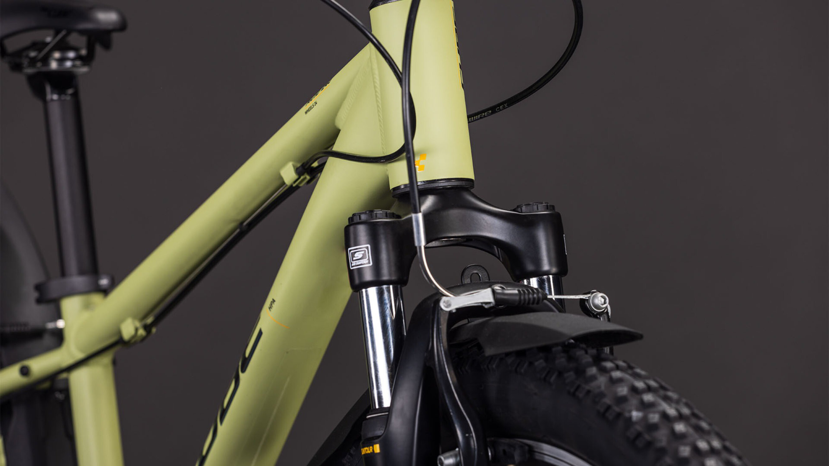 Ondanks alle praktische extra's blijft dit in de kern een rasechte CUBE mountainbike. Het frame is gemaakt van lichtgewicht, hittebehandeld 6061 aluminium. Dit zorgt ervoor dat de fiets wendbaar genoeg is voor technische paadjes, maar sterk genoeg om tegen een stootje te kunnen. De geveerde voorvork vangt de klappen op wanneer de weg hobbelig wordt, terwijl de krachtige V-brakes met speciale junior-hendels zorgen voor volledige controle bij elke stop.