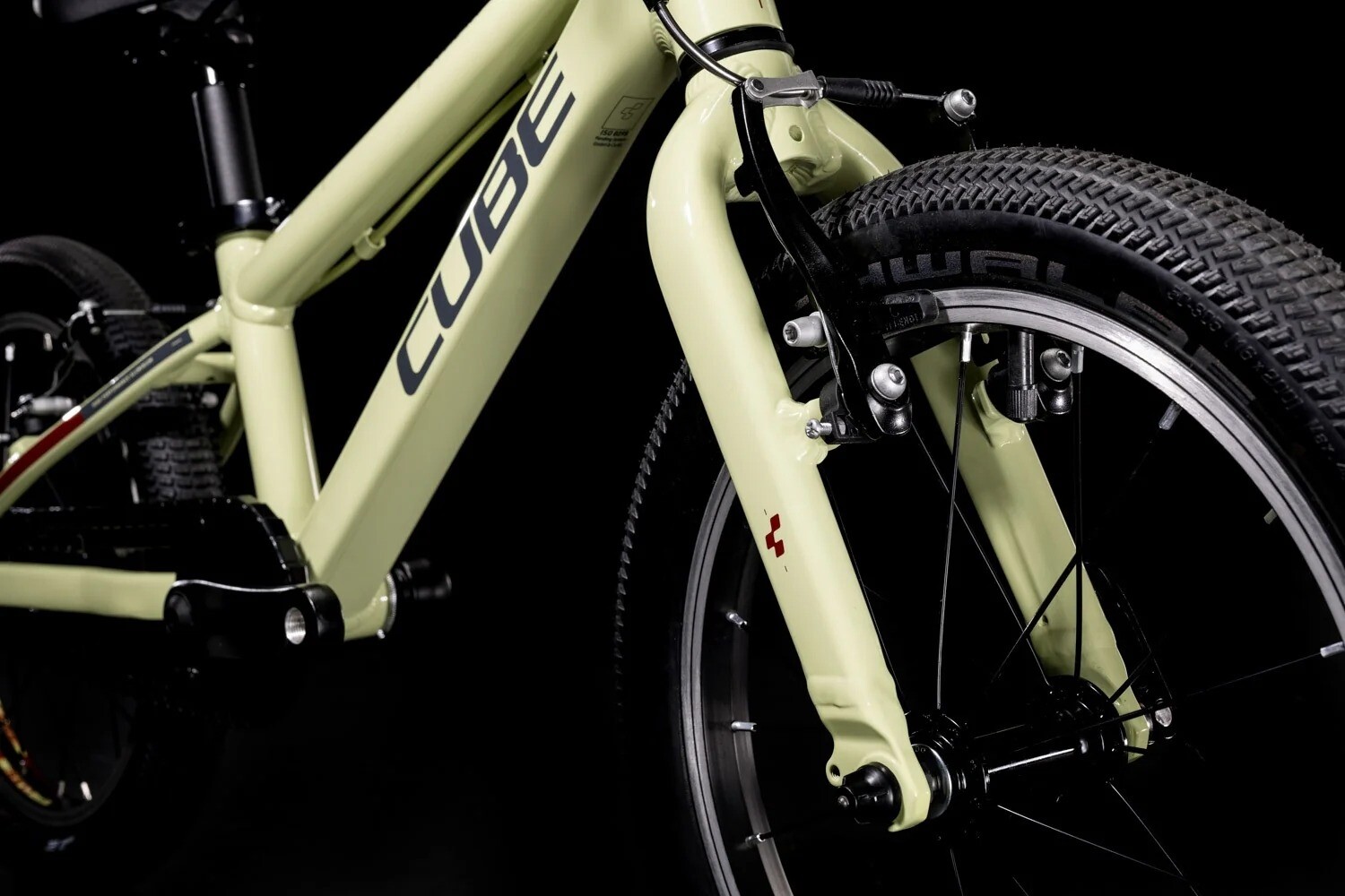 De CUBIE 160 is uitgerust met betrouwbare V-brakes voor- en achteraan, speciaal aangepast voor kleine kinderhandjes. De brede banden zorgen voor extra grip en stabiliteit, zowel op asfalt als op onverharde paden. De geometrie van het frame zorgt voor een natuurlijke zithouding, wat het fietsen nog leuker én veiliger maakt.
