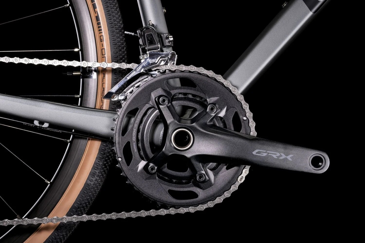 De dubbele 2×10‑speed groepset combineert betrouwbare Shimano GRX derailleur en crank (46x30T) met Tiagra ST-4700 shifters. Met een brede 11–36T cassette ben je klaar voor zowel steile beklimmingen als snelle afdalingen.