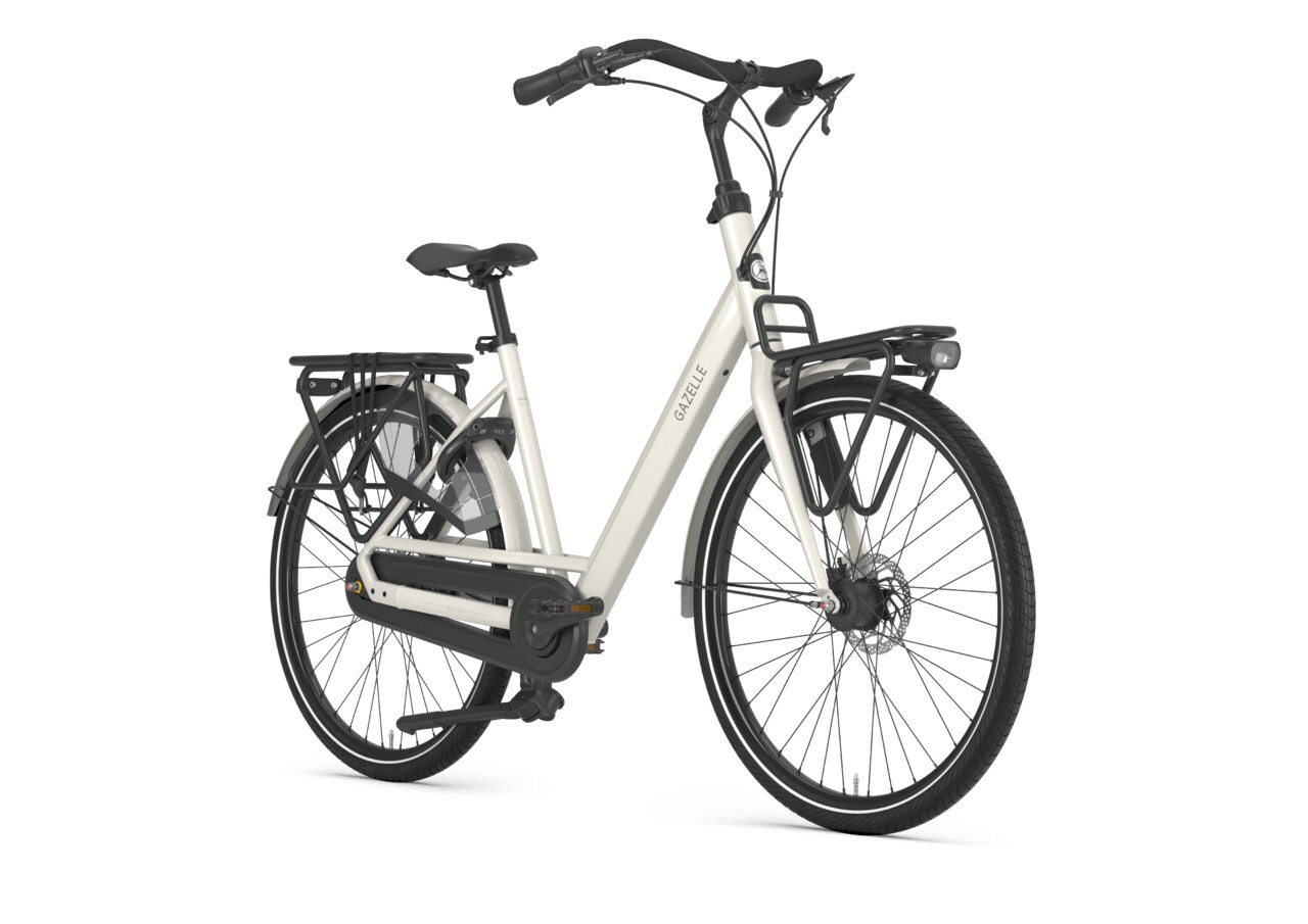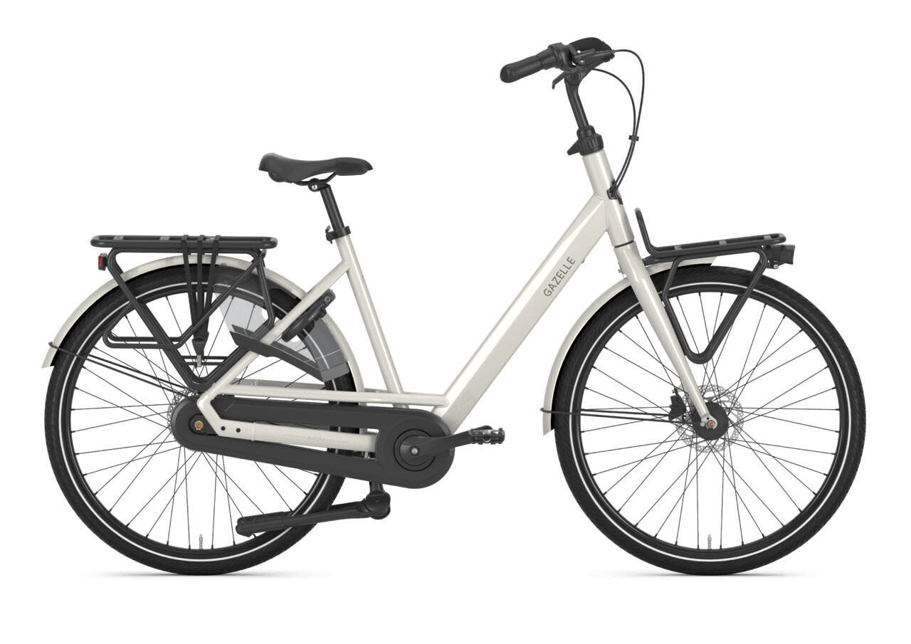 De GAZELLE Bloom T7 Dames 2025 in Ivory White Glans is een stijlvolle en comfortabele moederfiets met lage instap, 7 versnellingen en stabiel frame. Perfect voor kleinere dames die veilig en soepel willen fietsen met kinderen of bagage.